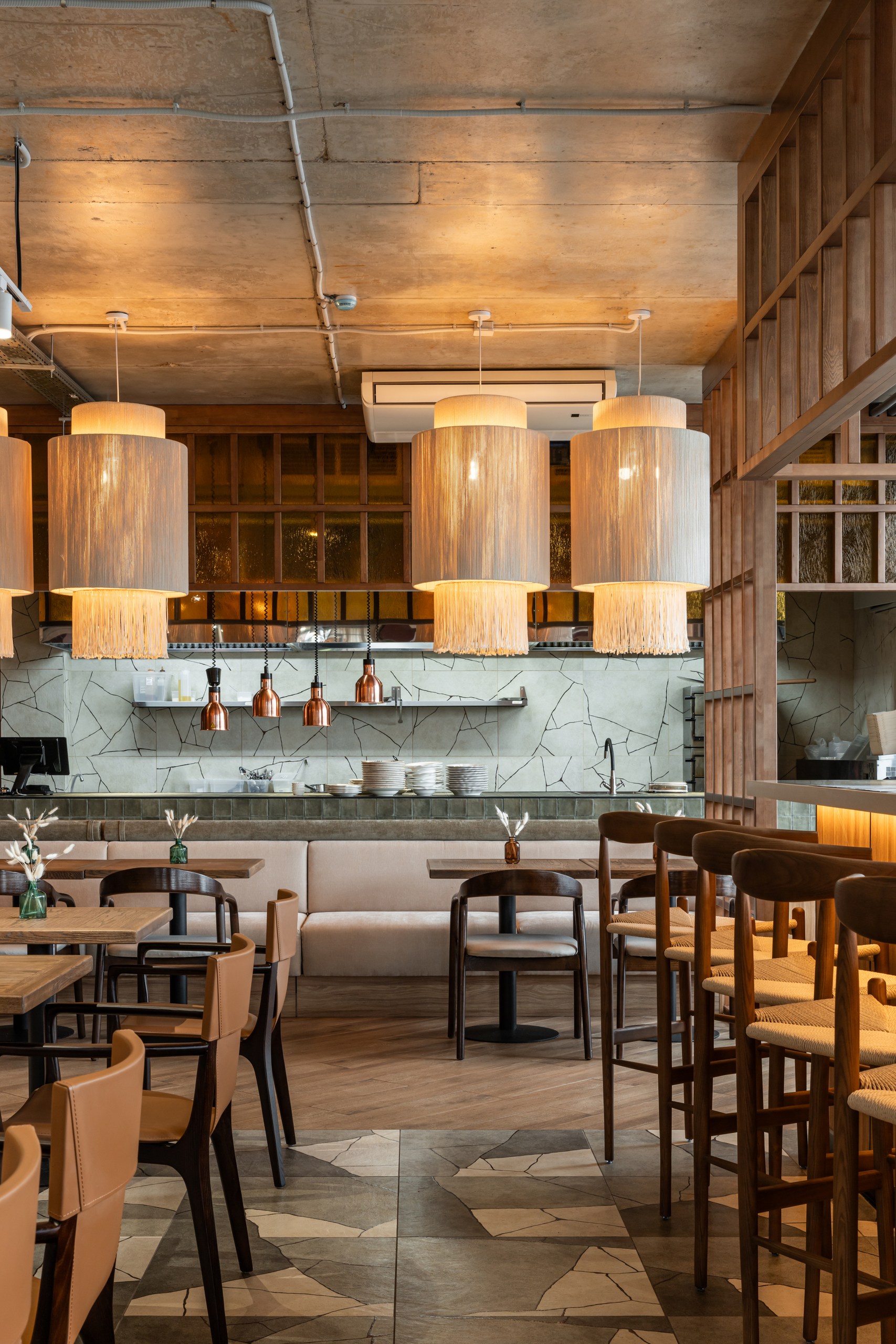 Изюминка— открытая кухня, где вы можете наблюдать